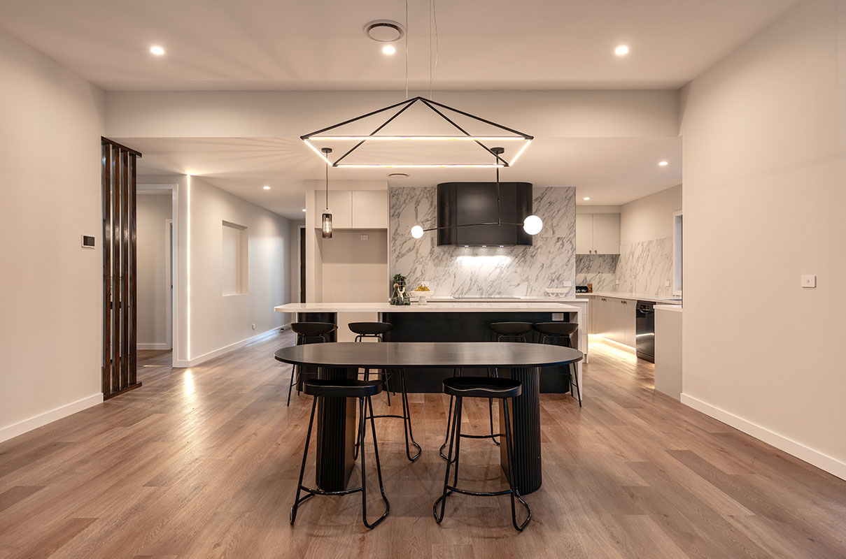 From the carefully selected materials and finishes to the harmonious use of textures and tones, every detail was meticulously planned to reflect contemporary elegance. The open-plan layout enhances natural light and movement, while the integration of custom joinery, sleek surfaces, and layered lighting ensures both aesthetic appeal and practicality. This home exemplifies our commitment to delivering timeless design tailored to meet the needs of modern family living.
