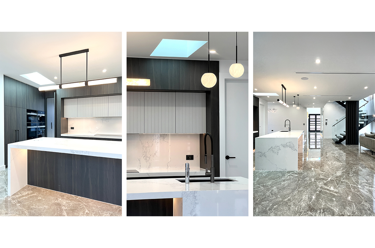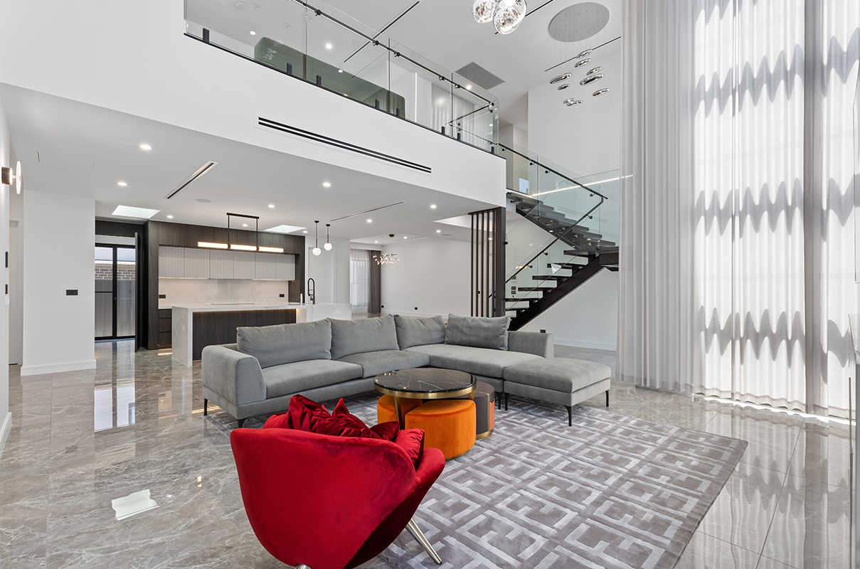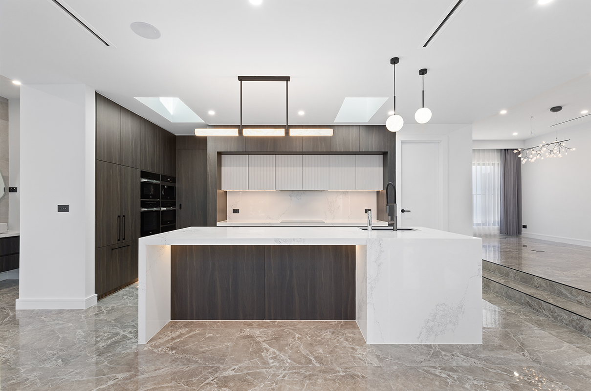 Prof Homes and Loft Studio collaborated on an ambitious project to transform a family home into a paradigm of open-plan living, seamlessly blending luxury and functionality. The vision was to create a space that not only meets the practical needs of a large family but also exudes elegance and sophistication. The design incorporated marble-looking tiles to achieve a luxurious feel, while careful planning ensured zoned yet cohesive entertaining areas. The layout was meticulously crafted to enhance the inflow of natural light, elevating the home’s ambience.