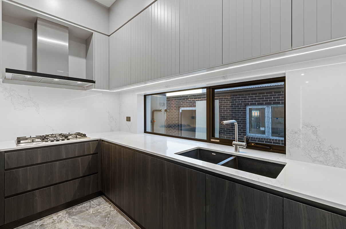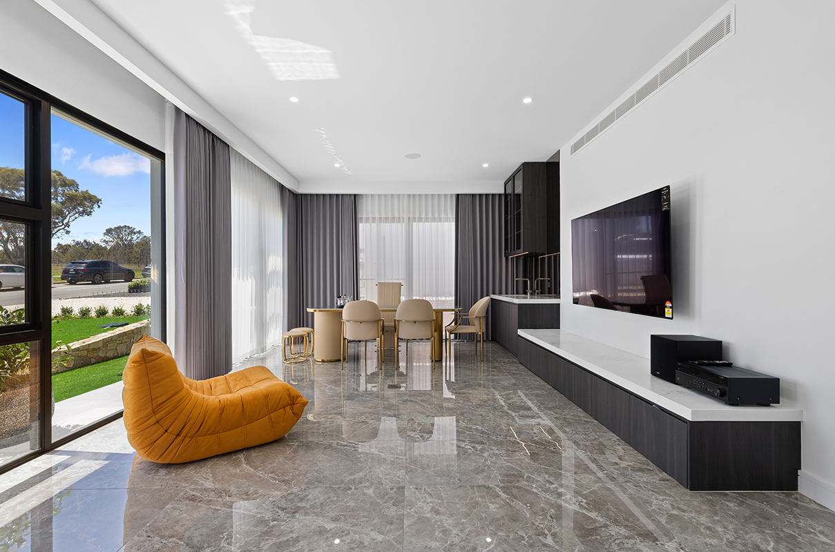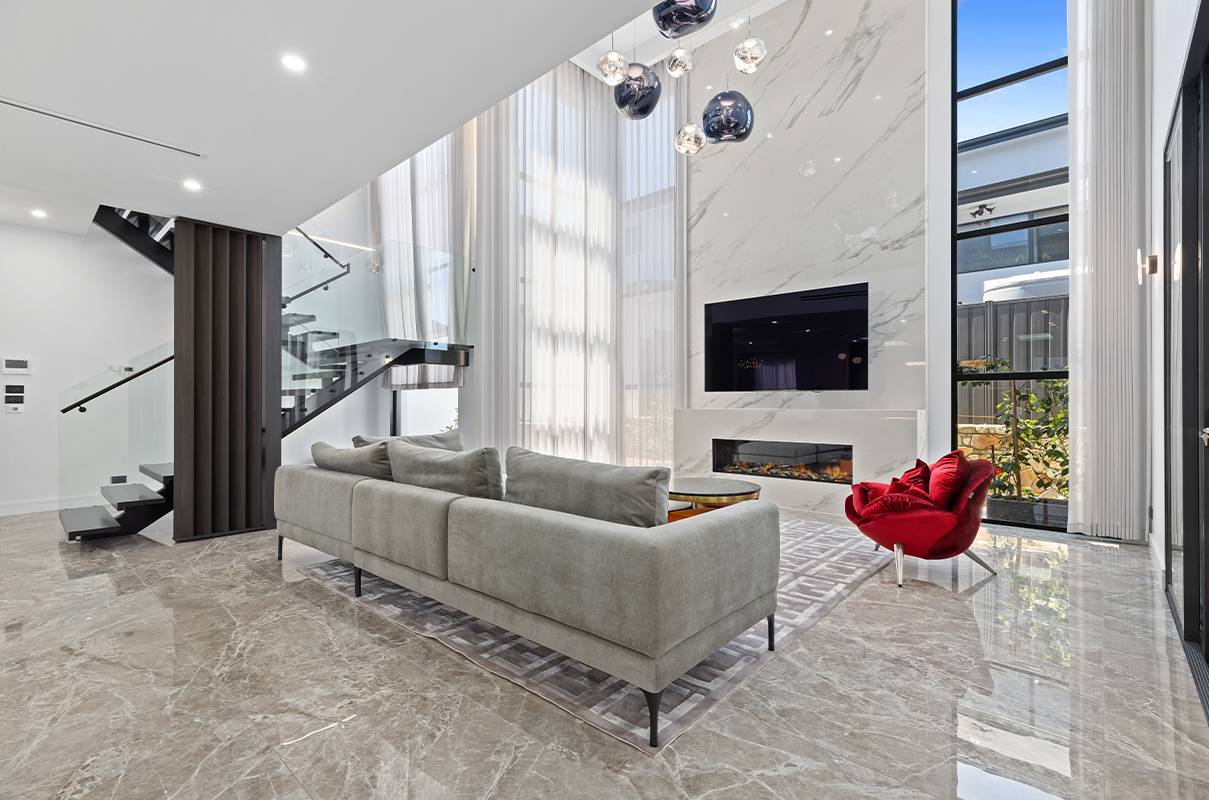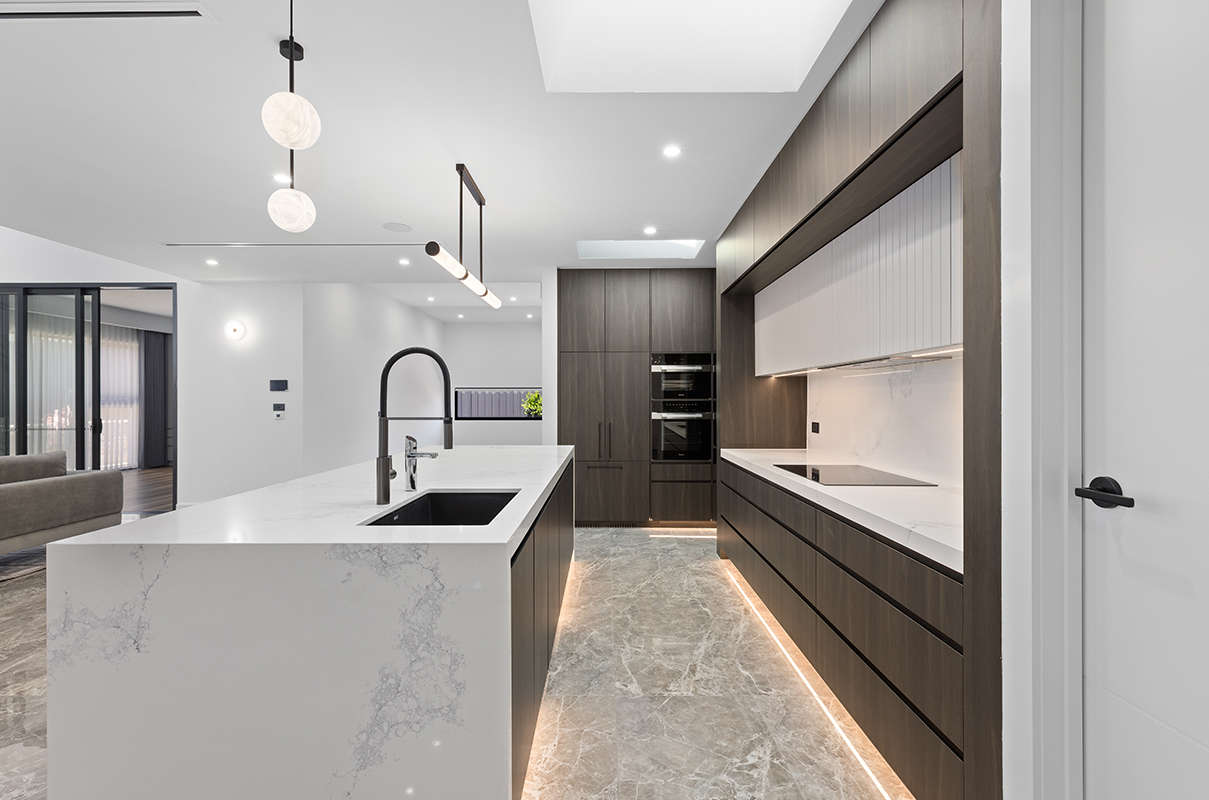 Prof Homes and Loft Studio collaborated on an ambitious project to transform a family home into a paradigm of open-plan living, seamlessly blending luxury and functionality. The vision was to create a space that not only meets the practical needs of a large family but also exudes elegance and sophistication. The design incorporated marble-looking tiles to achieve a luxurious feel, while careful planning ensured zoned yet cohesive entertaining areas. The layout was meticulously crafted to enhance the inflow of natural light, elevating the home’s ambience.